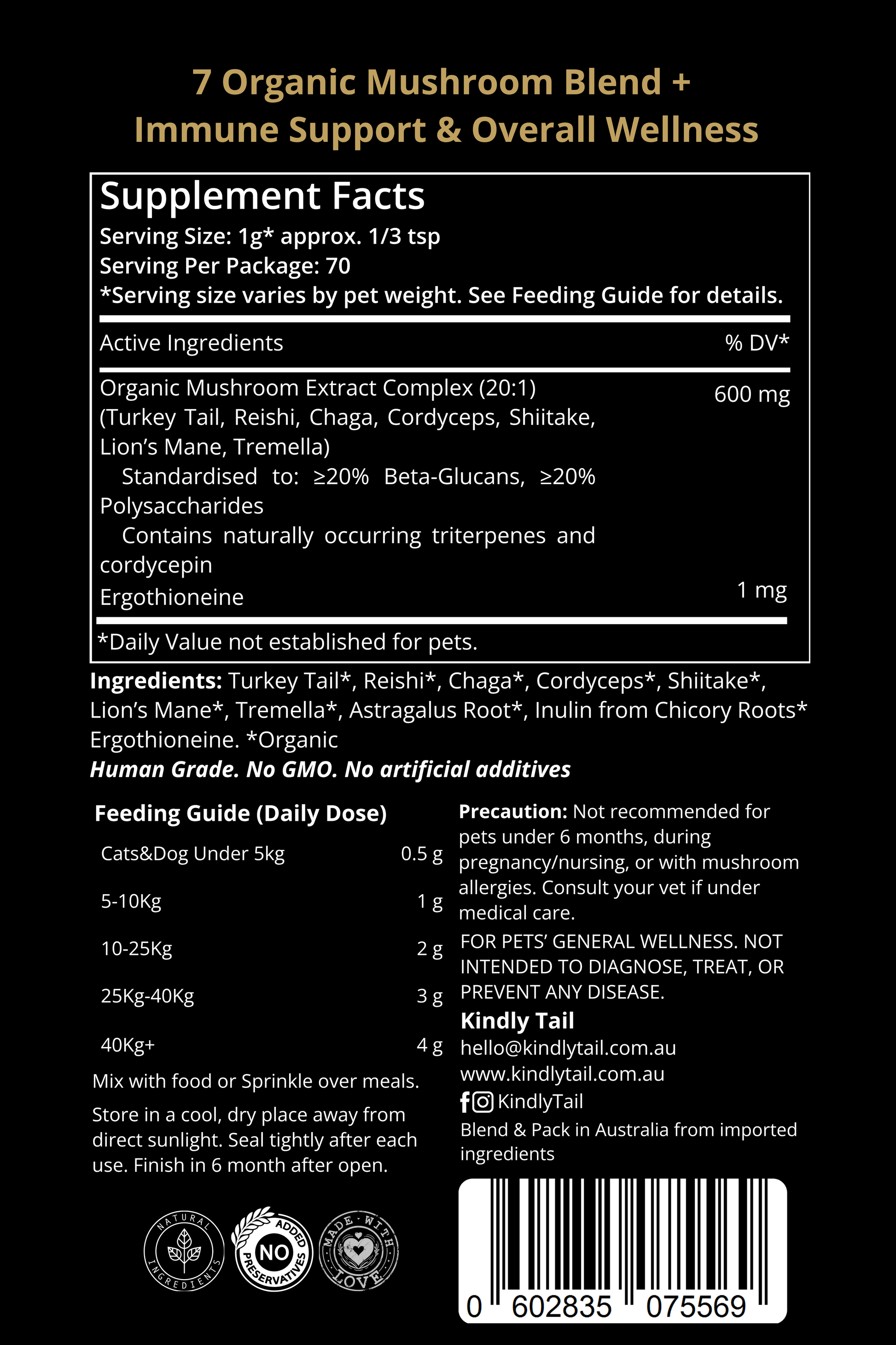 Yes. Our Mushrooms blend is designed for both dogs and cats. The serving sizes are adjusted by weight, making it easy and safe to include in your cat’s daily diet.